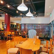 这家咖啡馆的面积比较大,双开门的店面,进深也很大。店堂的装修简洁,也不失舒适感,各种类型的餐位都有配置,方便顾客各取所需。