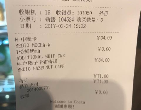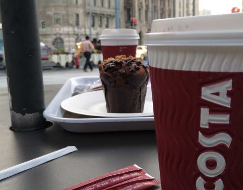 外滩谈事情,没想到这里的Costa coffee人不多。环境也不错。就在里面点了两杯咖啡,找地方坐下。谈谈事,还能充电,还是非常不错的选择