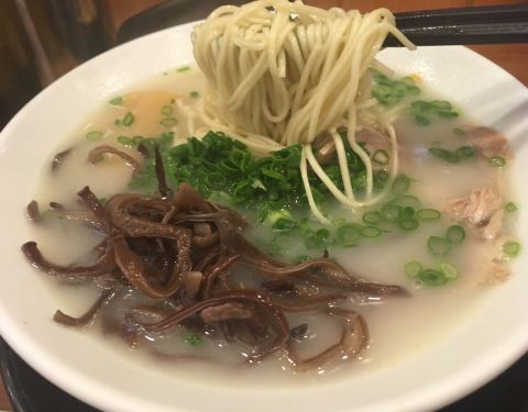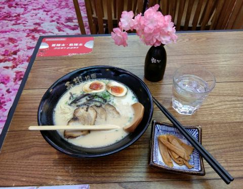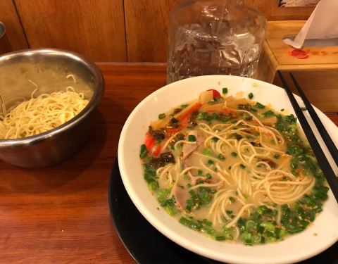 博多一幸舍拉面的人气一直很高,经常要排队。我们去的这家位于正佳广场的负一层,位置不太好找。拉面味道很好,汤底很浓,也可以选择加料。炸物也很好吃。店里会很贴心送发绳绑头发,好评!