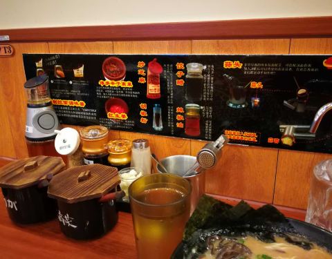 服务态度很好,人很多,但是翻台很快等位不久。汤头很浓郁,刚开始吃的时候觉得特别棒,但是吃了一半的时候就觉得有点油腻。可以配拉面的调料很多,拉面酱,芝麻,大蒜之类可以提香的东西,还有红生姜之类可以解腻的小菜。我还是觉得太腻了,吃完这一顿觉得短时间内都不会再来吃拉面……