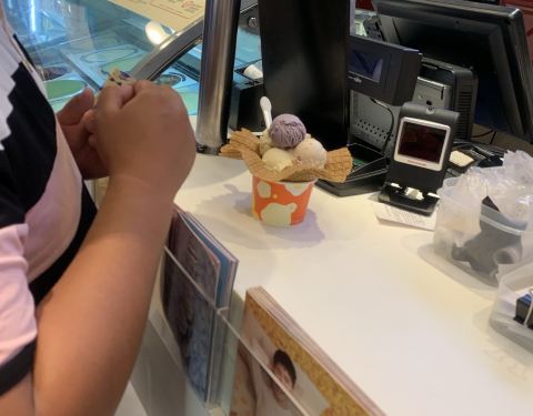 生意也不错,客人不少,时机不好的话经常要等位的。 点了2款冰淇淋,冰淇淋味道还不错的