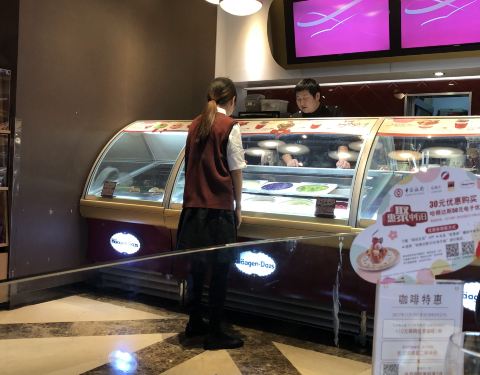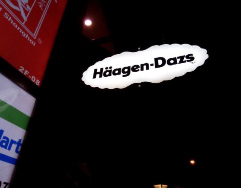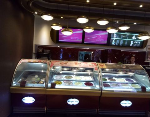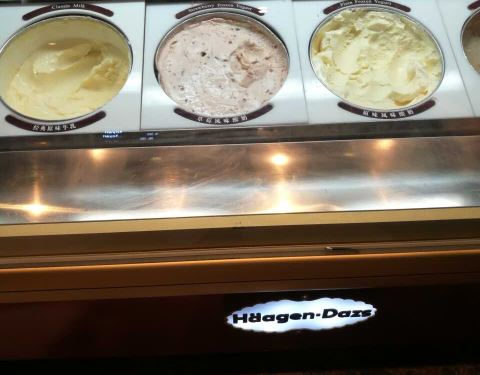 - 正好有二张电子券可以换哈根达斯,吃好晚饭后,时间还早就到了地铁口看见这家哈根达斯店兑换了二个球