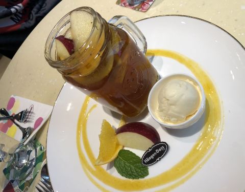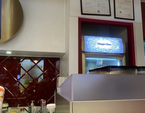正好有二张电子券可以换哈根达斯,吃好晚饭后,时间还早就到了地铁口看见这家哈根达斯店兑换了二个球。环境还是不错的,感觉很也棒。味道也是很喜欢的口味。