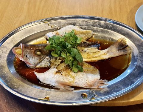 今天点了清蒸红斑,奶油虾,马来风光!三杯凉茶,两盘饭共81元马币好吃便宜好棒
