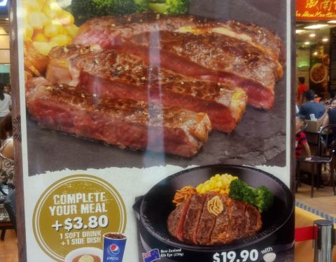 这家日本西餐连锁店在新加坡见过好几家,这家分店位于新加坡中部的宏茂桥。店面不大,人潮还是不错的。亲民的价格可以吃到不错的铁板牛扒。