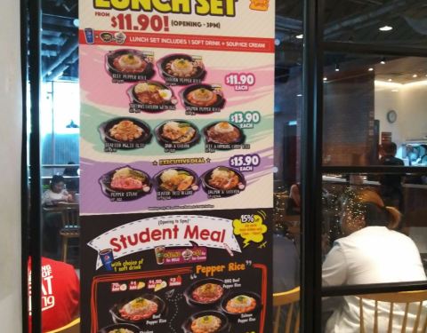 pepper lunch的套餐便宜,新币19.9块就有一份大大的套餐,非常饱足,吃得饱饱的,味道又好。如果加新币3.8就有饮料搭配,非常值得吃。