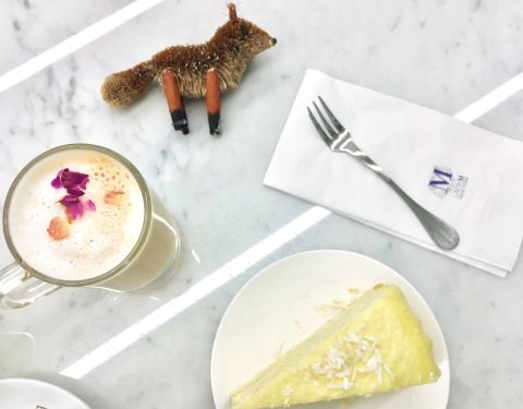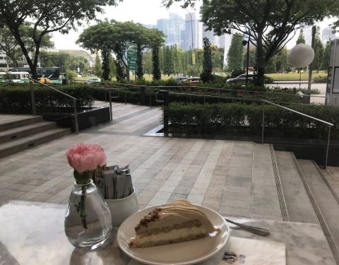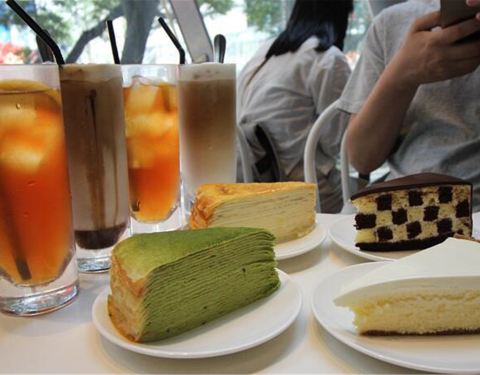 就在乌节路中心城。在二楼和三楼都有门店。里面有很大的楼梯可以一直走下来,其中空间还是很大。 最上面一层用来展示和厨房。下面的地方第二层有靠窗座位作为可以俯瞰整个乌节路。 这里的蛋糕非常的有名。价格也不错,现在30新币,可以有两块蛋糕和两块自选的饮料,这里的千层蛋糕,可以叉子一层层卷起来吃 推荐核桃口味。这里的玛奇朵咖啡是非常小的一杯。我开始以为他弄错了,是意式咖啡。这里玛奇朵比意式浓缩咖啡,还要量少。很小一杯。