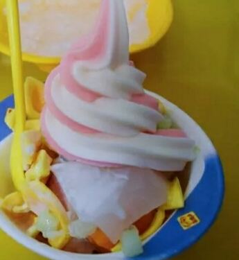 ...在街上开吃,于是我们就每人来上一份水果冰沙捞,发现这里的冰沙捞味道确实很好,水果新鲜,味美价廉