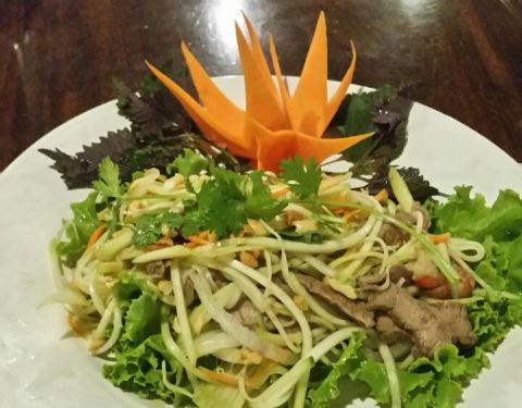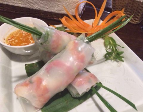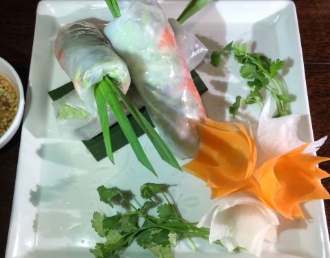 点了竹筒牛肉,比较注重原味就是没什么佐料的味道,春卷大个,但是味道也不敢恭维,面包夹菜是招牌,菜单上写的小河内,也是注重食材原味,蓝莓起司蛋糕偏甜。总体来说,越南菜不适合我,毕竟我来自美食大国的中国。点了竹筒牛肉,比较注重原味就是没什么佐料的味道,春卷大个,但是味道也不敢恭维,面包夹菜是招牌,菜单上写的小河内,也是注重食材原味,蓝莓起司蛋糕偏甜。总体来说,越南菜不适合我,毕竟我来自美食大国的中国。