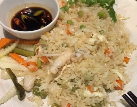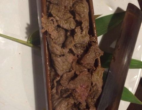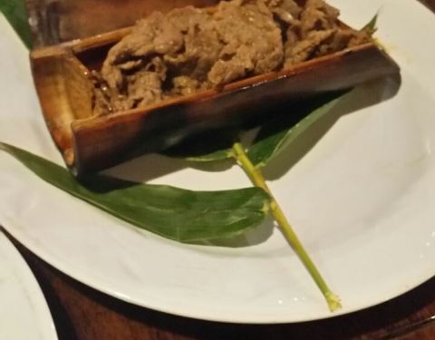 点了份烤鸡,牛肉,春卷。烤鸡很干,没什么味道,配了辣椒酱油。牛肉在竹筒里,味道很足,还不错。春卷很大份。。。环境很不错,感觉挺干净。很多游客在这用餐。