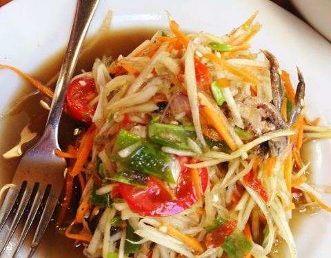 รอคิวนิดนึงเพราะร้านเล็กมาก อาหารมาไม่ช้านะ ส้มตำปูและตำไทยรสชาติเหมือนที่เมืองไทย ไม่กะโหลกกะลา ร้านนี้ส้มตำผ่าน