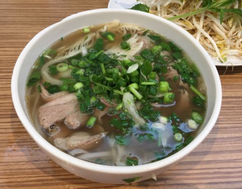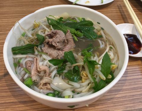 人气很旺的越南粉店,骨头熬制的汤头非常浓郁鲜甜,很多牛肉粉种类选择,综合牛杂粉包括牛肉牛杂,生牛肉在汤里烫一下很鲜嫩,牛肉很好味,不错吃。