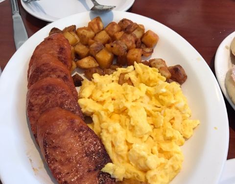 总体还不错,味道也还好,量有点大,胃口小的人可以两个人吃一份,因为看到两个女孩子就是这么干的。另外人气很足,下午一点多去的门口还排路十多分钟 - Way shorter line than the other locations. Eggs...