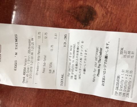 サラトガ本店は、気持ち的には、普通のお店。パンケーキはどちらかというとがっつり系であるが、美味しい。