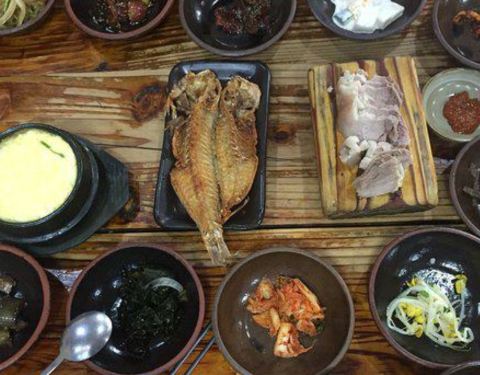 这是家地道的济州岛美食餐厅,我喜欢这里的油炸鱼,香脆可口,还有丰富新鲜的蔬菜,很健康