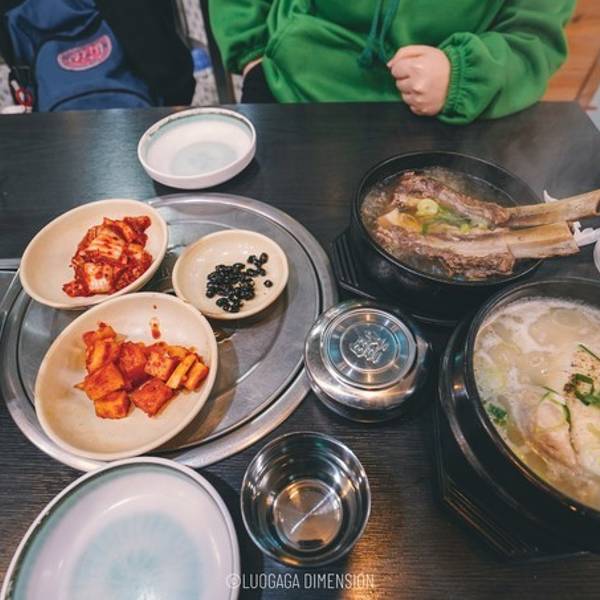 鸡肉酥酥烂烂的 小孩和老人吃最适合了。排骨汤,10000韩元,就是要等很久,要20-30分钟,大家都吃完了才上,不过排骨很香。还有朋友点了鲍鱼人参鸡汤,鲍鱼还蛮大只的。点的冷面蛮好吃的,酸酸甜甜。送的辣白菜略...鸡肉酥酥烂烂的 小孩和老人吃最适合了。排骨汤,10000韩元,就是要等很久,要20-30分钟,大家都吃完了才上,不过排骨很香。还有朋友点了鲍鱼人参鸡汤,鲍鱼还蛮大只的。点的冷面蛮好吃的,酸酸甜甜。送的辣白菜略咸,鱿鱼泡菜很好吃,小菜可以随便加,很赞。