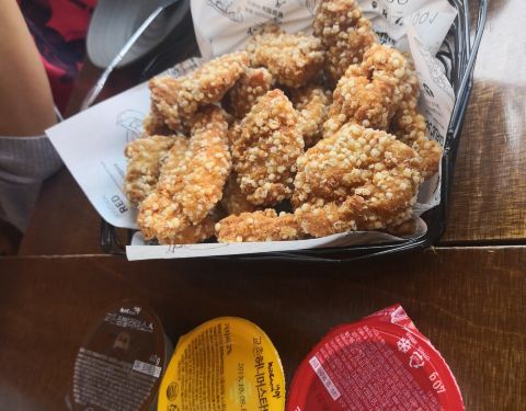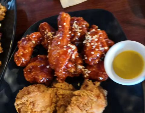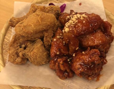 - 甜辣鸡翅鸡腿组合味道不错。价格和国内相比,不便宜!无骨鸡块味道一般