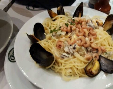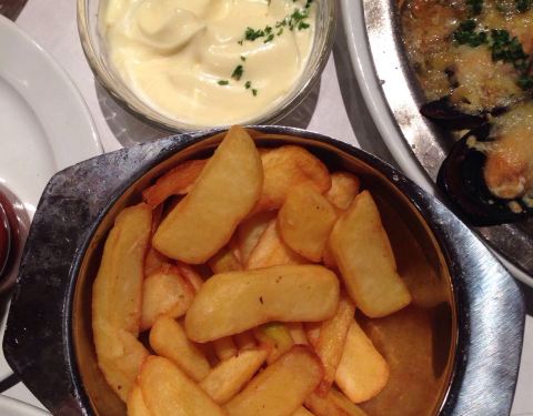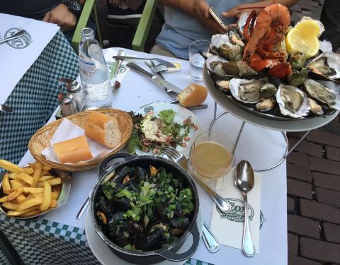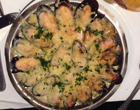 这家店确实是这片餐厅区生意最好的,我们选了一楼的位置,不时有大波的人进店去楼上用餐。青口味道还行,两个人点了个套餐还加了盘芝士焗的青口,没吃完。到比利时游玩,值得尝一下。