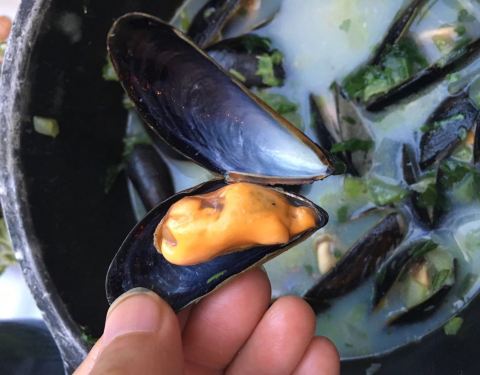 - 我在比利时只吃了这一顿贻贝,不能比较其他家,点的白酒奶油,奶油汤不咸,贻贝少数几个有沙,口味算好吃
