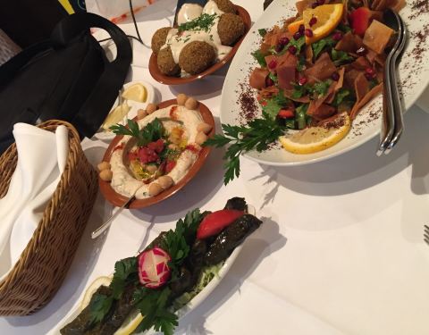 Extremely good Lebanese restaurant, good setting, mezze royal good choice, red regular 2008 Kefraya wine good choice (Kefraya Les Breteches wasn't available anymore - more complex by grappes inside)