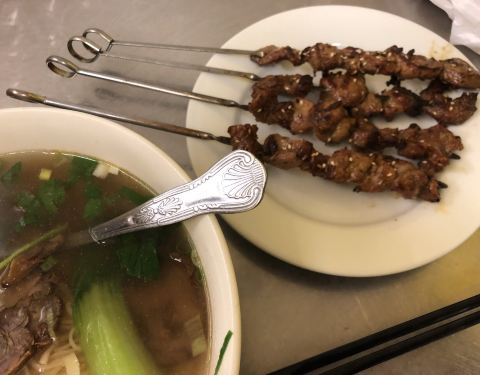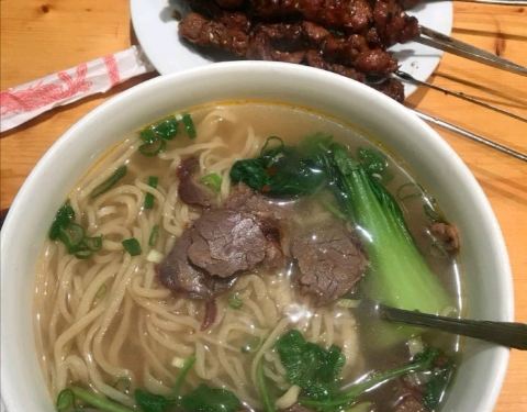 ...面做的很劲道的,有兰州牛肉拉面,炒面,凉面,烤羊肉串和各种酱拌牛肉,在这里吃饭的国人游客非常多
