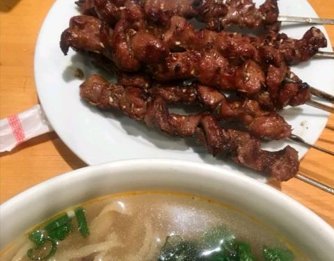 还很正宗的,和甘肃看到的差不多,里面有烤羊肉串,还有爆炒羊肚,就是食材没有兰州那里这么的新鲜,...