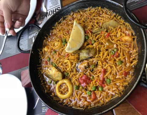 毕加索博物馆在一条很狭窄的巷子里,沿路而来附近大大小小有不少风格各异的小餐馆供游客小憩,比较传统的西班牙口味,西班牙海鲜饭偏咸,其他都中规中矩了!