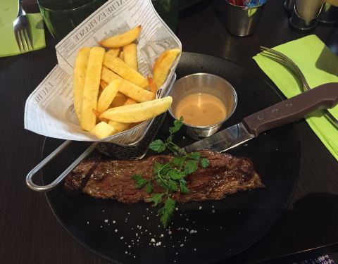 在老城区的小巷子里面绕来绕去才找到点到好吃的牛排,虽然不是推荐的主食,但是牛肉很香。牛排煎的外焦内嫩搭配薯条,也是个黄金松脆。