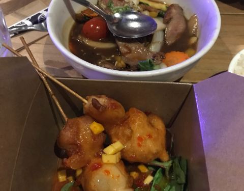 做的泰国的小吃,除了汤类,都放在纸盒子里面,炸豆腐的味道很不错哦,冬阴功做的一般般,感觉是用冬阴功的粉冲出来的汤,味道一般。