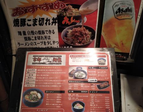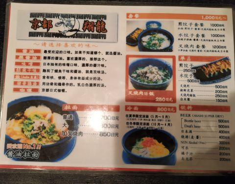 离京阪线稻荷站很近,到这里的时候已经大概晚上七八点钟,其他餐厅都已经关门,就选择了这家,点了一份1000日元的套餐,上来后傻眼了,一份煎饺,一份叉烧肉丝饭外加一大份拉面,这明显就是2人份!煎饺火候到家,非常不错,叉烧肉丝饭比较咸,肉丝饭和拉面里的大葱非常多!拉面味道一般,不过给的肉很多!