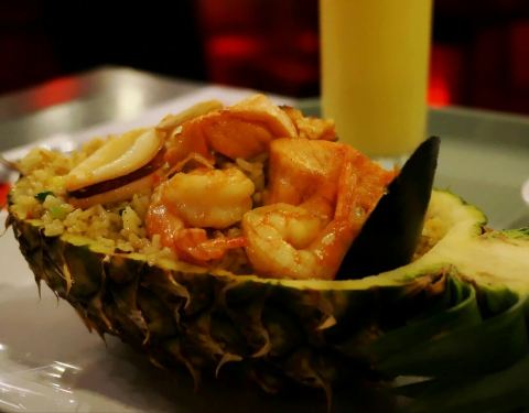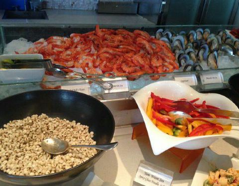 ...是性价比还不错,价格也跟市里面吃东西也差不多,关键是味道,也是还挺不错的,里面有很多东南亚的菜