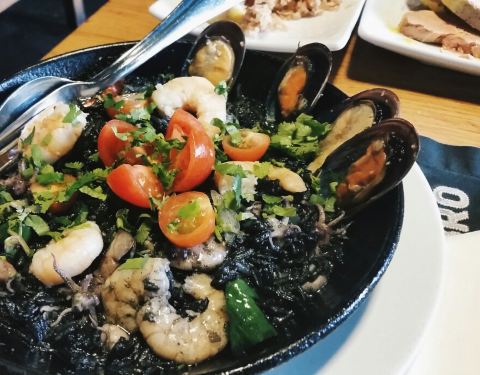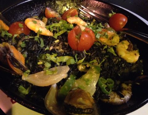 Amazing black rice! Great grilled sea bass. Fried baby squid is also top notch. An altogether excellent meal.