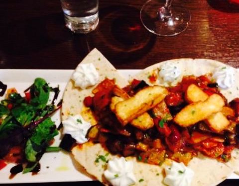 和朋友一起去吃的,我们都觉得鹰嘴豆泥味道不错,丰富的口感充裕了我的口腔,个人喜欢素食,所以 都点的比较素,沙拉里有洋葱、西红柿,别样的享受,蛋糕要夸一下,挺大的,而且不贵,咖啡味道不错,可以尝一下。