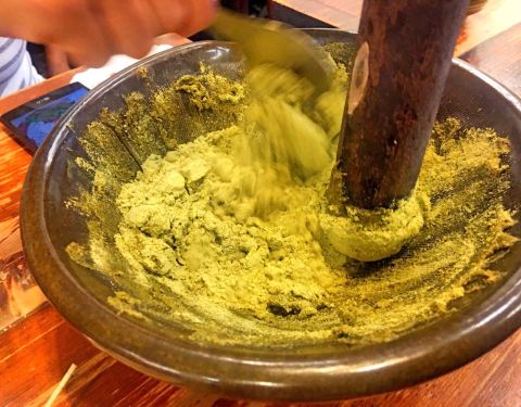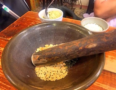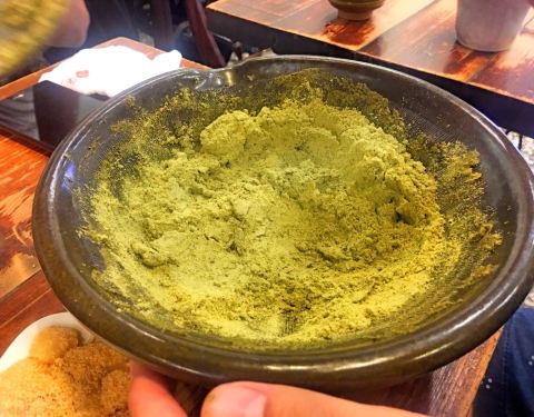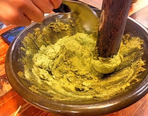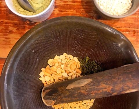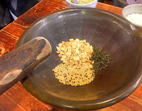 昨天下午去北埔擂茶了! 性價比超級高!350三位還送茶點,茶點包括麻糬,因為超級愛吃,還多加了一份! 先吃點茶點墊墊飢,然後打足馬力擂茶擂起來~