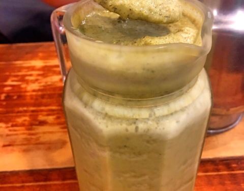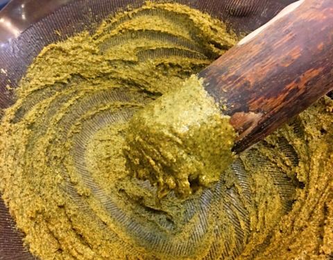 擂茶要把黑白芝麻花生茶擂成泥巴狀態,大概擂了半小時吧,然後再倒另外現成磨好的粉進去一起再次擂,最後一部分泡了熱茶剩下的部分做了擂茶冰沙,配上米泡,好喝有營養~