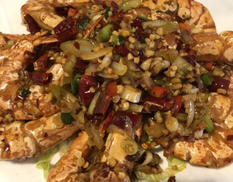 在当地算是比较有名的中餐店了。虽然不沿着马路但有清楚的指示牌,路边可停车,但只能60分钟,店铺后面也可停。店堂不太大,所以人多了可能要排队。椒盐大虾个头个个都很大,新鲜Q弹,虽油炸过但也不油腻。牛肉河...