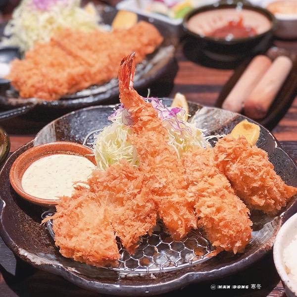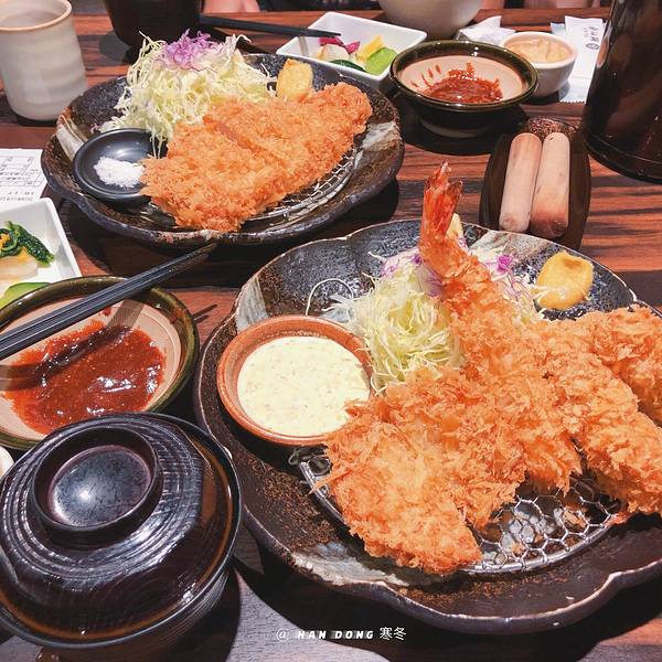 稍稍等了下位就就坐了。 豬排可以選肥瘦,大小。英文菜單比日文菜單少東西(等位的時間研究了下~)。。。洋白菜,米飯,小菜都可續,餐後有黑咖啡可自取。一個人的位置安排的也恰到好處,不會尷尬。之前看人家說都...稍稍等了下位就就坐了。 豬排可以選肥瘦,大小。英文菜單比日文菜單少東西(等位的時間研究了下~)。。。洋白菜,米飯,小菜都可續,餐後有黑咖啡可自取。一個人的位置安排的也恰到好處,不會尷尬。之前看人家說都會等位好久,所以只等了三個號我無比激動(是真的餓不行了已經)。選的黑豚(門口有認證~),多加了一只虾。上餐具阿姨表示不管你是哪裡人,我都能讓你明白怎麼吃 最後:這家炸豬排真好吃
