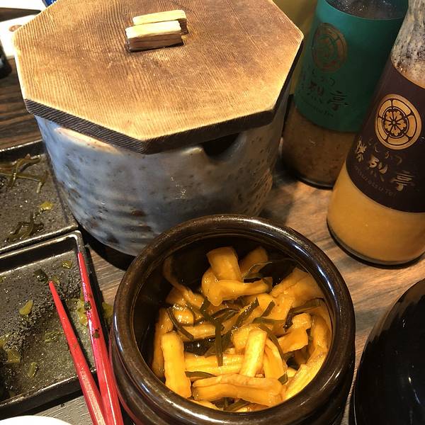 啊哈哈哈~ 说到午饭,附近的胜烈亭(KatsuretsuTei)一定一定不要错过~炒鸡好吃~好吃到哭~小芝麻要手工捣碎~作为合格的吃货,这种环节不能犯懒!毕竟蘸料也是美食不可缺少的一部分~桌边的小咸菜可以说是老李最爱...啊哈哈哈~ 说到午饭,附近的胜烈亭(KatsuretsuTei)一定一定不要错过~炒鸡好吃~好吃到哭~小芝麻要手工捣碎~作为合格的吃货,这种环节不能犯懒!毕竟蘸料也是美食不可缺少的一部分~桌边的小咸菜可以说是老李最爱了,尤其是萝卜条,老李基本上吃了人家一罐,还好没单独收费(真是蜜汁尴尬了,这玩意儿北京也有哇,大哥在北京就没见爱吃萝卜干!到了日本连萝卜干都瞬间溢价了)还有这个柚子味的冰淇淋,妈妈哟,入口即化这种片汤话我就不说了,最关键的是浓郁的柚子味,还略略带点儿苦,反正柚子的还原度极高,加上冰淇淋本身的凉凉沙沙的口感,美味!