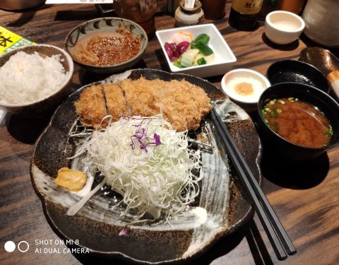 下午4点左右到的,店里没什么客人,点的人气猪排套餐,猪排香酥软,厚厚的,非常好吃,只是吃多了有点油腻,米饭很好吃,罐子里的咸菜也非常好吃
