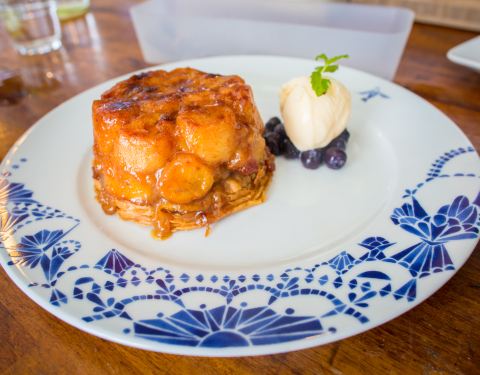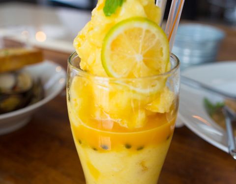 与大海为邻的优质餐馆,有五星级餐厅水准。餐厅有露天座位,推荐晚上可以坐室外吹海风。中午垦丁艳阳热辣辣,想享受阳光建议坐在吧台,身后是落地玻璃+南湾无敌海景,眼前是开放式厨房,大厨在眼前为你做每一道菜,简美食与美景的最高享受。 【环境】店內的空间不大,但是布置很有度假FEEL。室外有5桌左右,不过因为午饭室外阳光太毒辣,没有人坐。餐厅最有特色的地方,就是厨房是开放式的,坐在厨房前面的吧台可算是最佳座位,可以看到厨师做菜,而且背后享受阳光。厨房不是大汗淋漓的场面,而是一种法式大厨般的优雅,特别是看美女甜点师做甜品,很享受。 【菜品和口味】这里分量不小,2个人只试了1个主食1个主菜1个甜品2杯饮料,热情百香果凤梨冰沙,青柠薄荷冰沙,都是用当地水果,味道很天然。夏天喝超级消暑。松露油鴨腿炖饭,鴨腿好大,本來以为用肉眼看來,鸭腿会天干,没想到不会,一口吃下鴨肉,皮脆肉嫩,很好吃。炖饭的口感中间没有硬米,炖得烂但是不会太稀,有淡淡的奶油香味。主厨风格乱主厨炒蛤嬤 ,上桌很大一盘,口味上不咸,番茄带入了清甜,肉很多一颗接着一顆。焦糖香蕉派 ,餐后甜點是一定要的,因为美女甜品师一直在我们餐桌前做甜品,看的我们直流口水。烤过的焦糖没有太脆的口感,表面只有微焦微酥,香蕉还是維持软软的,但几乎每块香蕉都有沾到焦糖,以它为結尾。很满足。 【价格】热情百香果凤梨 180台币,青柠薄荷 180台币,松露油鴨腿炖饭380台币,主厨风格乱主厨炒蛤嬤 260台币,焦糖香蕉派 155台币,台湾有档次的餐厅都要加收10%服务费,最后结账不到1200台币,相当于240人民币2个人。 【服务】中午12点开门,营业到晚上9点。我们是中午1点钟到餐厅,前面有2-3桌在等位。等位过程中,前台一直收到预定座位的电话,生意超级无敌好。留下电话等位,不过服务员不会拨打,等位还是要在现场等,靠电话号码叫号。我们现场大概等了半小时,很幸运,坐在了开放式厨房区域用餐,这个区域总共才6个位置,眼前是主厨在眼前为你下厨,身后是温暖的夏日阳光和南湾海景。如果能选位,强烈推荐这个区域。上菜速度很迅速,不过因为看着大厨在眼前做菜很享受,等上菜的时间也是一种享受。