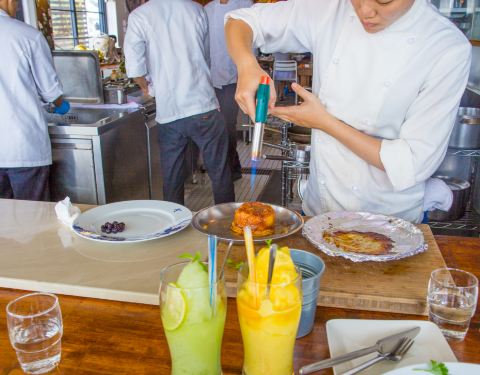 开放式的厨房,烹调卫生一览无遗,厨师都长得很帅气,做起事来又很利索,景观不错,对着大海,心情也很好,食物很精致,采用的食材都很新鲜,搭配都很新颖,上菜很严谨,各司其职的为客人服务,很欣赏这种办事效...开放式的厨房,烹调卫生一览无遗,厨师都长得很帅气,做起事来又很利索,景观不错,对着大海,心情也很好,食物很精致,采用的食材都很新鲜,搭配都很新颖,上菜很严谨,各司其职的为客人服务,很欣赏这种办事效率,厨师用心,我们也吃得用心。