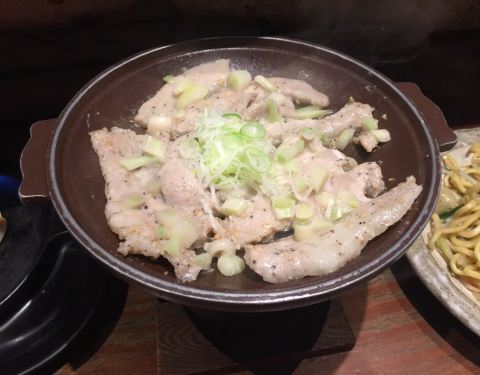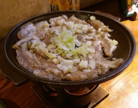 猪颈肉的冲绳葱头盐烧