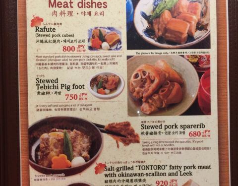 他们家在日本众多店里确实属于不是特别贵的那种。不仅有日本传统的料理,居然我们还看到了冲绳风红烧肉 ,很好奇就点来吃了,和我们概念中的红烧肉食不一样的概念