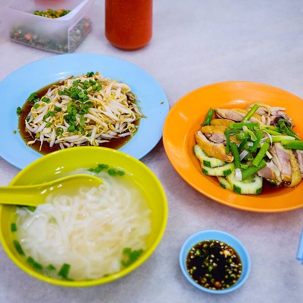 鸡肉口感细滑,加上豆芽菜的爽口水嫩,配上Q滑的河粉,再来碗鲜美的汤,吃过一顿还想再来第二顿!最有趣的是怡保的豆芽菜,不是国内的细长那种,是短短肥肥的,简单地加酱油白灼,撒点胡椒粉,咬来爽脆得很又有甜...