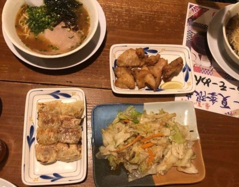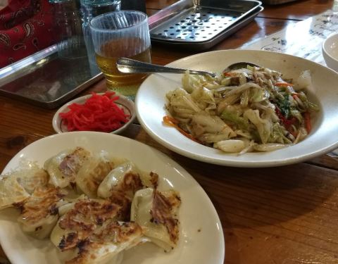 和上海一样的吃法,豚骨拉面,配饺子,吃的比较饱了。