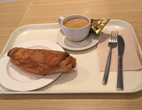 HEMA 是一家百货店,在比利时其他地方都有分店。这家店的二楼有一半是餐厅,客人自助拿完食物就到收银结帐,东西虽然不怎样好吃,但可以休息一下。