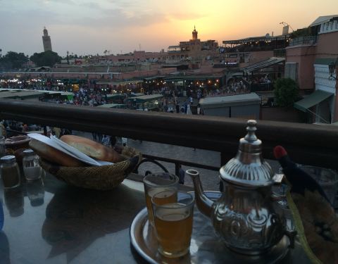 Terrazza su piazza Fna. Ottime le tajine, da provare quella di pollo con cipolle e limone! Prezzi nella norma.