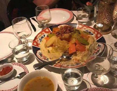 这家真的比较做法比较传统. 菜单看起来简直要人命 阿拉伯语 法语 关键 英语真的十分的花式 看着很费眼力. 我们提早半个小时到的 不能进去坐着等 一定要到了12:30才能进去坐着. 点了传统汤;牛肉蔬菜塔吉;色拉(菜...这家真的比较做法比较传统. 菜单看起来简直要人命 阿拉伯语 法语 关键 英语真的十分的花式 看着很费眼力. 我们提早半个小时到的 不能进去坐着等 一定要到了12:30才能进去坐着. 点了传统汤;牛肉蔬菜塔吉;色拉(菜单上就一种传统色拉). 这里的沙拉就是很多小碟菜 . 牛肉塔吉挺好吃的.配的蒸小米.服务态度一般.