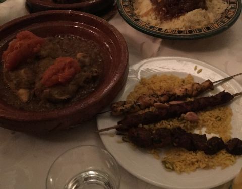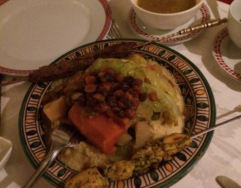 Best "traditional" and higher end Moroccan food. Call for a reservation. Get the vegetarian salad -- a 14 dish tapas set, really -- along with the lamb tajine with caramelized onions.
