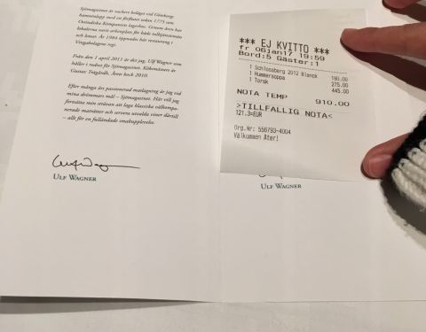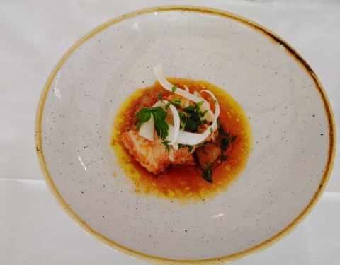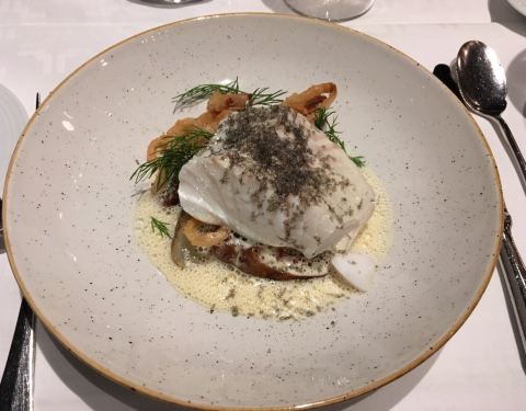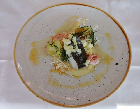 哥德堡的同事都推荐这家米其林餐厅,在欧洲非洲出差游玩了一个月,最后一顿晚餐必须来一顿好的。提前一个多月预约了中午的位置,后来他们特地打国际长途电话跟我确认,由于是新年假期后第一天,只有晚餐。于是改到了晚上,这性价比就不高了!首先环境绝对没话说,在水边的一栋小木屋,里面的布置温馨惬意。提供的也是一对一的服务,价格小贵,但是跟国内很多虚头巴脑的高级餐厅相比还是货真价实的。头盘跟主菜都点了海鲜,量很足,而且很新鲜。我们对酒没啥研究,就让服务员推荐了一款白葡萄酒,口感还不错!